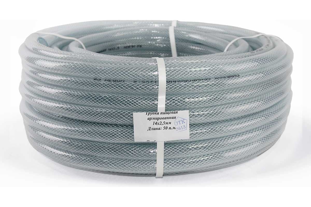 Пищевой шланг прозрачный армированный НОВЭМ (трубка) 14х2.5 мм, 10 м ШПА_14х2.5_10