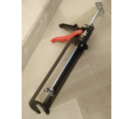 Пистолет очень добротно сделан, приятно держать в руках и пользоваться. Дешевые пистолеты из фольги и рядом не стояли. Но не подходит для обычных картриджей 310мл. Под них пришлось открутить давящую шайбу и давить двумя напрявляющими через проставку внутри тубы. В общем, прлучилось адаптировать под 310 мл, можно работать