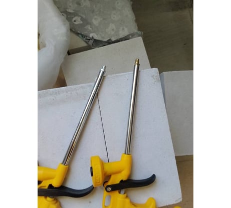 Хочу добавить фото в отзыв по пистолету. Визуальные изменения пистолета плохого качества: носик стал белого цвета вместо жёлтого, нет пропечатанного логотипа на ободке, куда закручивается баллон пены. Смотрите фото.