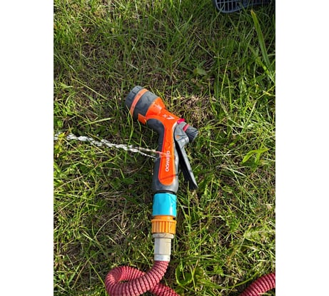 Оснащен регулировкой интенсивности распыления в 7 режимах от слабой до жесткой струи для эффективного полива участка.