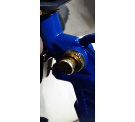 Мне попался экземпляр с недостатком в литье самого пистолета. Находится в незаметном месте и, что самое обидное, на резьбе соединения шланга.