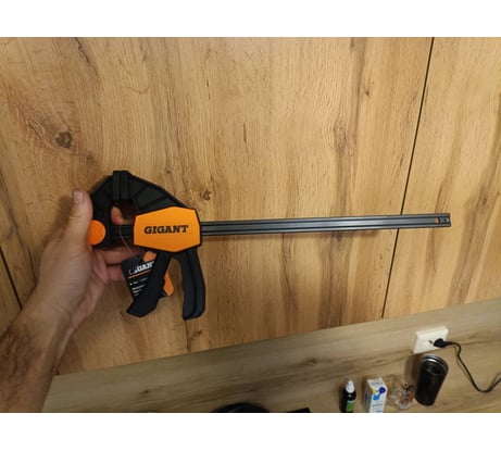 - Пистолетная быстрозажимная струбцина Gigant 600 мм GPQC 600 удобна для ладони, не вызывает усталости и существенно упрощает работу техника, слесаря и других специалистов.