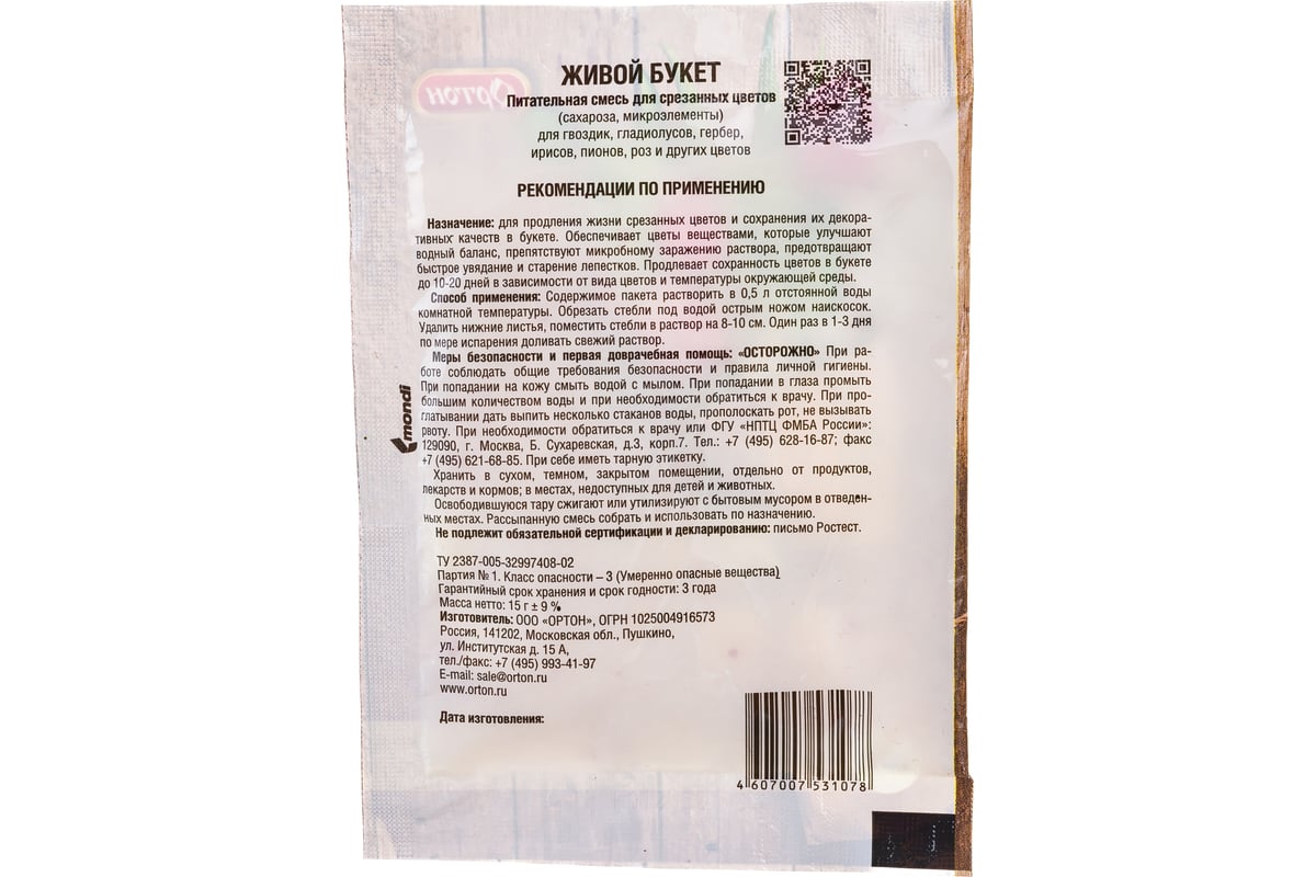 Питательная смесь для сохранения срезанных цветов ЖИВОЙ БУКЕТ 15 г 03-007