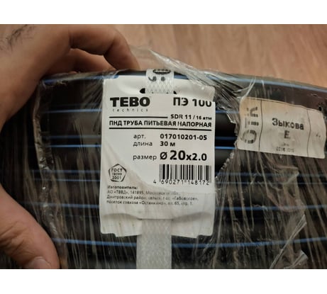 Отзывы о питьевой напорной трубе ПНД TEBO R-TB 20x2.0, SDR11 (ПЭ100;16 атм) 30 м 017010201-05
