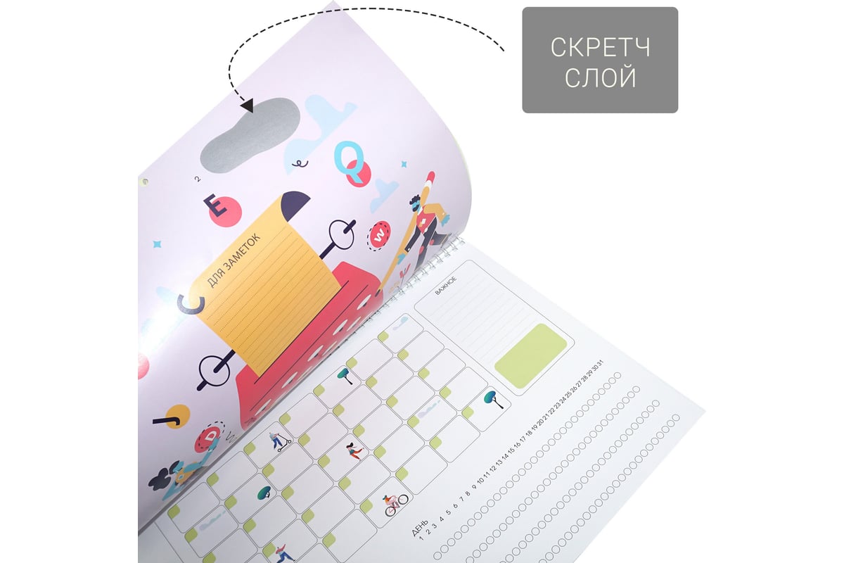 Настенный планер Listoff “Гармония тела” поможет не только в планировании повседневных дел, но и в достижении новых побед. Под скретч-слоем на постерах вы найдете 4 увлекательных задания. Отмечайте результаты в специальном трекере, с помощью него вы сможете оценить свои достижения в конце каждого месяца. Планер удобен и не привязан к датам, а значить начать работу с ним можно в любое время.