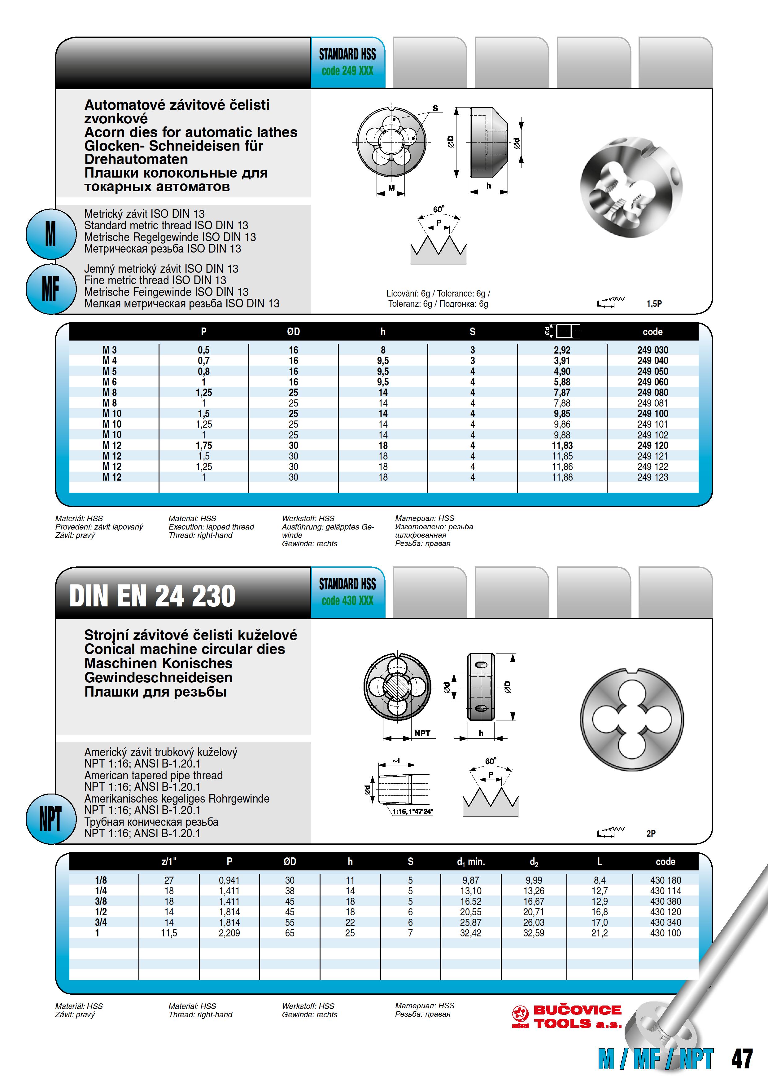 Технические характеристики плашки Bucovice Tools 430120