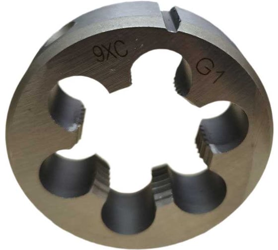 Плашка ИНКО 1 G труб. цилиндр. представляет собой инструмент для нарезания наружной трубной цилиндрической резьбы ручным или машинным способом на металлических деталях цилиндрической формы. Плашка изготовлена по ГОСТ 9740-71 из стали 9ХС - инструментальной стали, легированной хромом и кремнием. Класс точности - 6g.