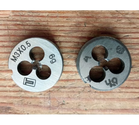 Плашка рабочая, режет неплохо, но по маркировке нужно угадывать размер и шаг. Рядом на фото лерка другого производителя с нормальным обозначением