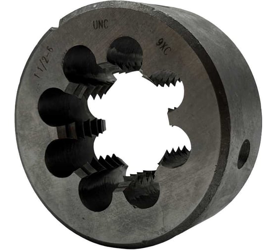 Плашка дюймовая UNC 1-1/2" 6 нитей предназначена для точной нарезки наружной цилиндрической резьбы по американскому стандарту UNC (Unified Coarse Thread) с углом профиля 60. Используется для работы с трубами, болтами, шпильками и прочими металлическими заготовками круглой формы. Отлично подходит как для первичной нарезки, так и для восстановления поврежденной резьбы за один проход без заусенцев и смещений.