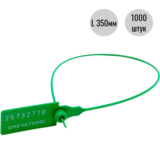 Пластиковая номерная пломба Пломба.Ру D 2,3 мм., L 350 мм., Цвет Зеленый 1000 шт. КПП-3-1603СТ 619341