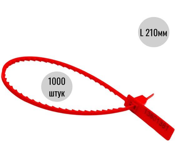 Пластиковая номерная пломба ООО Пломба.Ру D 3,4 мм, L 210 мм, Красный 1000 шт. КПП-1-2203 619347