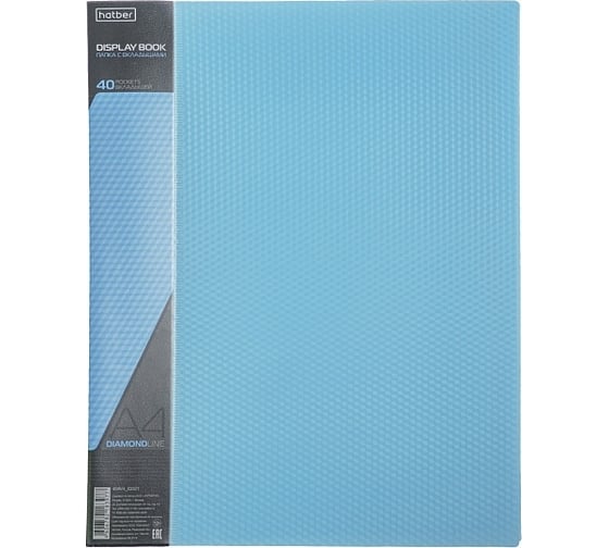 Пластиковая папка Hatber 40 вкладышей А4 корешок 21 мм DIAMOND 700 мкм Синяя полупрозрачная, 26шт. 038391