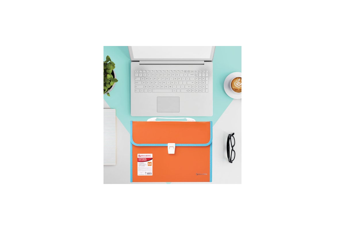 Пластиковая папка-портфель BRAUBERG JOY А4, 13 отделений, с окантовкой, оранжевый 227975