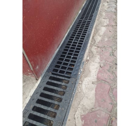 Дренаж был сделан много лет назад, когда решетки были в диковинку, хрен найдешь. Потом появились - тут ошибся, схватил тонкие металлические, - они легкие, гнутся под ногой и подпрыгивают - переворачиваются (особенно ловко это выходит у мелких детей), а там и до разбитых коленок или вывихнутых ног недалеко. Эти пластиковые легли и лежат себе.