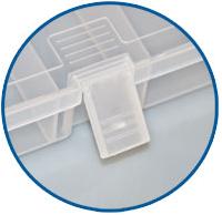 Надежная фиксация Наличие зажима на крышке пластиковой рыболовной коробки Salmo 1500-87 позволяет крепко фиксировать контейнер в закрытом состоянии. |