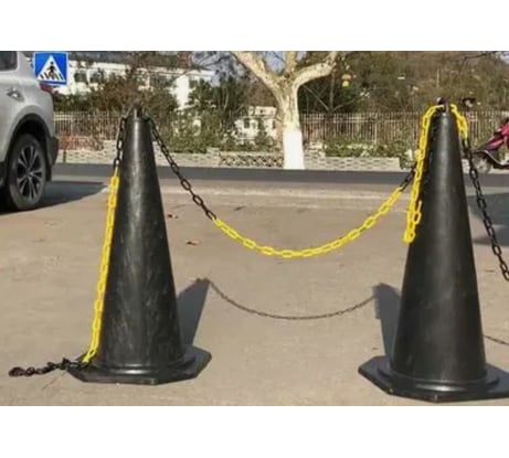 Цепь лёгкая и при этом прочная, отлично выдерживает нагрузку и не теряет форму. Использую её для ограждения территорий на стройке и парковках .