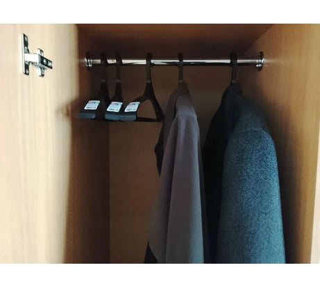 Вешалка мягкая, прогибы соответственно присутствуют, подобную, но плоскую, вывернуло под курткой осенней. Посмотрим на эту, как под нагрузкой покажет себя. Наклейки отдирать то еще занятие, как и следы скотча, которым перемотаны несколько штук.На фото вешалка не та, что приезжает в заказе!!! Приезжает такая, как Комус продает, они одинаковы, только Комус дешевле.