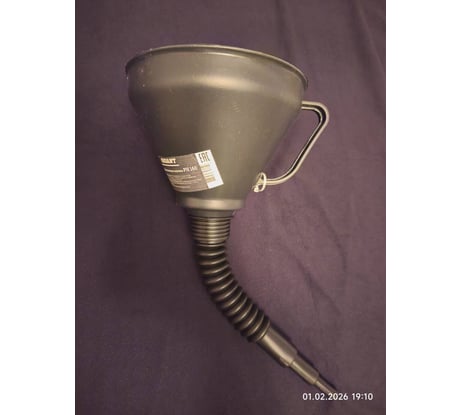 Воронка выполнена из маслобензостойкого материала и отлично подходит для растворителей и химически активных составов. Ее можно использовать для любых типов технических жидкостей. Не предназначена для пищевых продуктов.