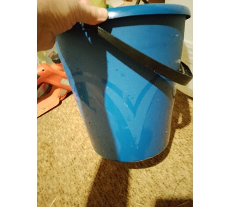 Пластик без следов развода, вкрапления частиц отличающихся цветом и следов формовки. Оконтовка верхнего края ведра, как софтач покрытие. Полуглянцевый, полуматовый внешний вид, с характерным рисунком. Вода не протекает при заполнении. На дне круглый кант, по краям ведра, для лучшей устойчивости.