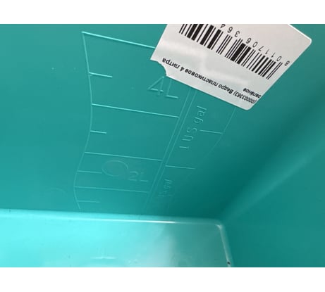 Хороши пластик, цвет бирюзовый прислали,он почему то дороже на других сайтах. Внутри мерная шкала до 4 л, для уборки и для переноса мопов и бутылочек подойдет.