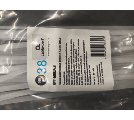 Пластиковые стяжки Cablexpert 450 мм х 9 мм, белые, 100 шт. NYT-450x9