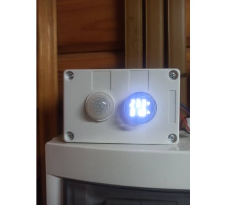 Нужно было объединить ампервольтметр и датчик движения, чтобы работал только при приближении. Установочные размеры подошли.