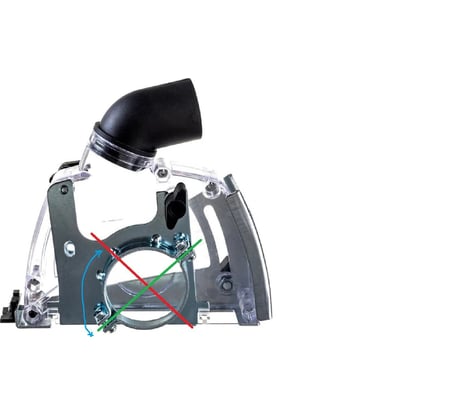 Узкий хомут для крепления. При уменьшении глубины пропила открывается щель из которой будет бить пыль