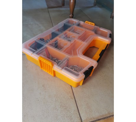 Неплохой органайзер, очень похож на Stanley (таких 3шт, очень нравятся, но цена теперь в космос). Пластик довольно прочный (у Stanley правда корпус чуть толще), защелки хлипковаты, но думаю работать будут. Есть возможность собрать несколько штук в стопку, тоже плюс. В крышки сделаны пазы что бы перегородки держать и перекрывать, мелочь точно не будет из ячеек смешиваться (этот момент лучше чем у Stanley сделан). Своих денег стоит. Буду еще брать.