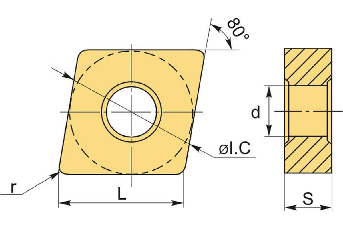 - Форма пластины – C (ромб 80°)