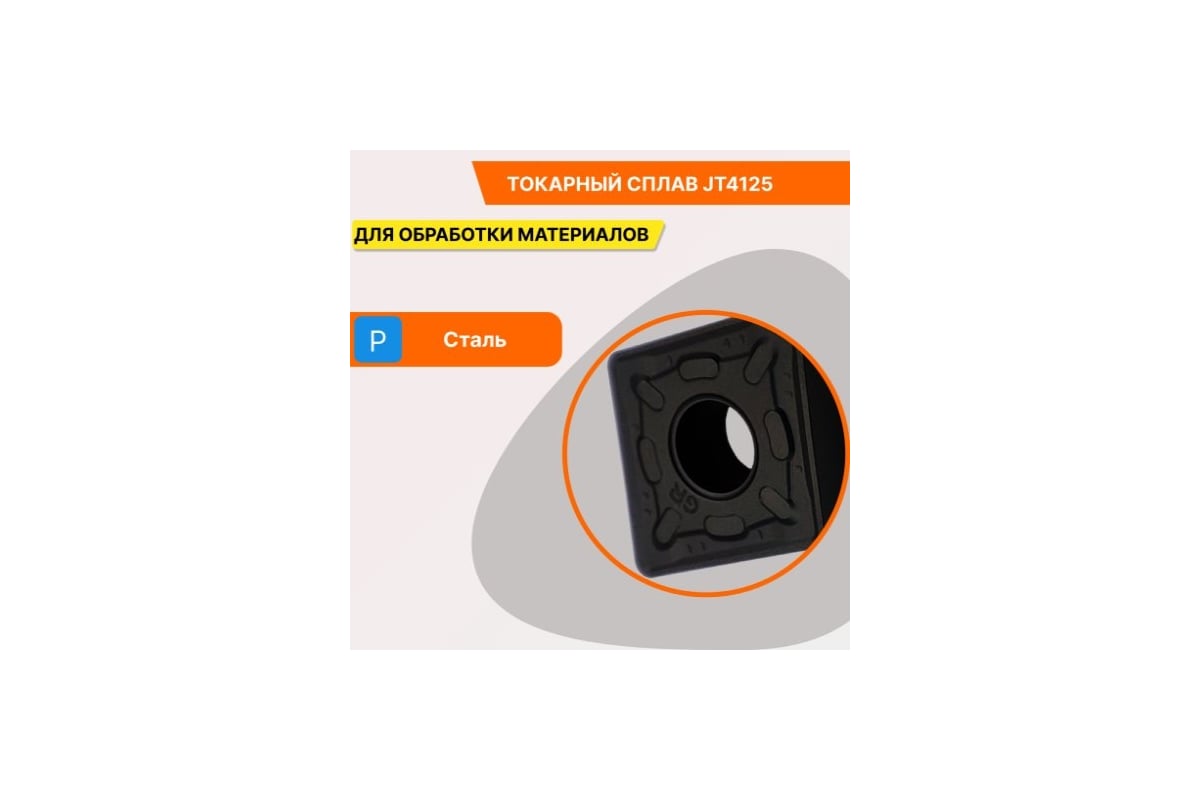 Сплав JT4125 - Подложка с особопрочной и жесткой режущей кромкой, покрытая многослойным покрытием TiCN и сверхтонким покрытием Al2O3. Подходит для общего использования по стали и для чистовой и получистовой обработки стали, стального литья и нержавеющей стали.