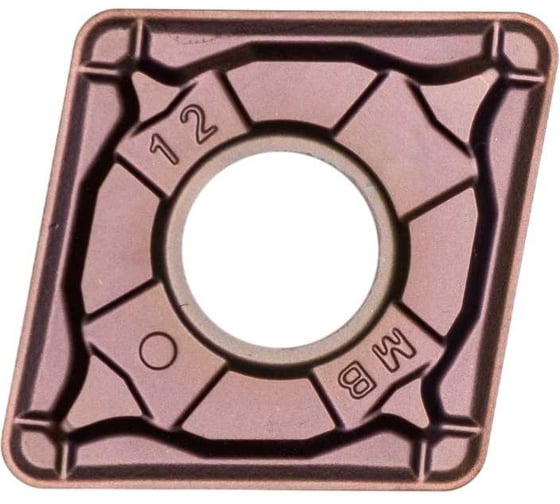 Пластина выполнена в формате CNMG: ромбическая форма 80° с негативной геометрией дает высокую прочность и надежность в серийной обработке. Радиус вершины 1,2 мм делает пластину более устойчивой к износу и подходит для получистовых проходов с повышенной подачей и глубиной резания по сравнению с меньшими радиусами.