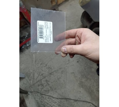 Пластина предназначена для защиты светофильтра сварочной маски от расплавленных брызг металла, грязи, пыли и механических повреждений. Внешний вид напоминает обычное стекло, но легче него почти в 2 раза.