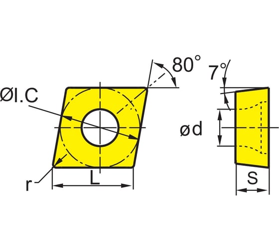 Твердосплавная пластина без покрытия. Сплав YD101 для получистовой и чистовой обработки алюминия и других материалов.