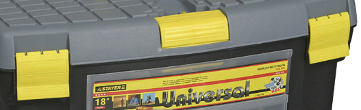 Комфорт Для более удобной эксплуатации пластмассовый ящик для инструмента STAYER UNIVERSAL 2-38011-18 оснащен ручкой для переноса. |
