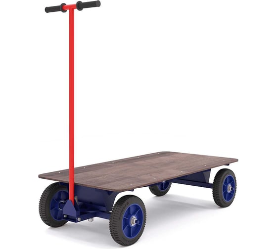 Отличная платформенная тележка, особенно если часто работаете на неровных поверхностях. Пневматические колеса делают своё дело: нагрузку смягчают, по плитке и асфальту идет как по рельсам. Сталь добротная, сборка без люфтов.