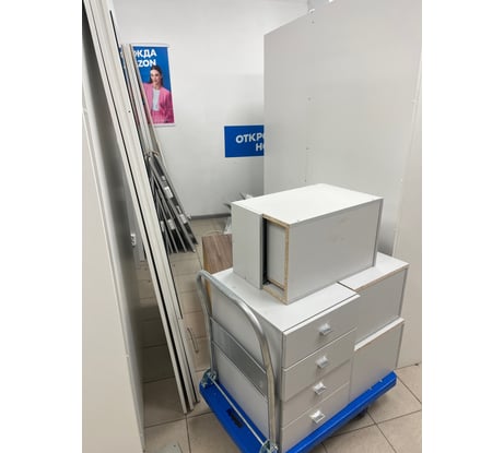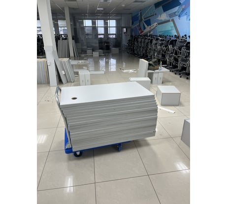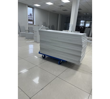 Легкая сборка, выемка для переноски в собранном виде, бесшумные колеса. Покупали на склад, по размерам проходит в стандартный дверной проем, катит легко и свободно, крепеж добротный, с с пластиковыми прокладками в шайбах, чтобы не откручивались от вибрации.