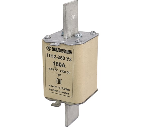 Плавкая вставка Электротехник пн2-250 у3 на 160а, медные ножи ET522886