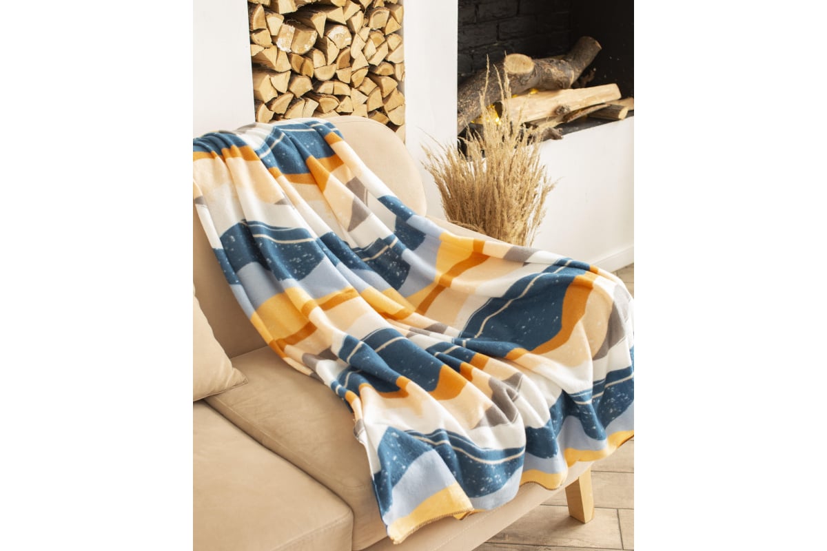 Плед Luscan орнамент морские волны флис 130x150 см разноцветный 1437299