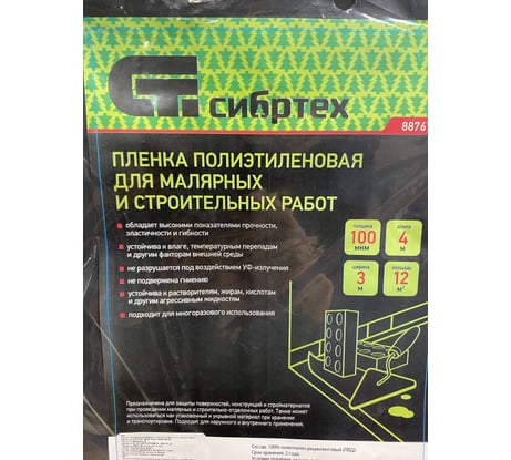 Отзывы о пленке полиэтиленовой для малярных и строительных работ (3х4 м; 100 мкм) СИБРТЕХ 88767