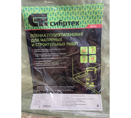 Пленка полиэтиленовая для малярных и строительных работ (3х6 м; 40 мкм) СИБРТЕХ 88766355 ₽