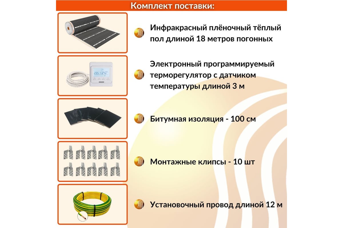 - Все для монтажа в комплекте Терморегулятор с датчиком температуры, зажимы(клипсы), изоляционный скотч, монтажные провода, инструкция