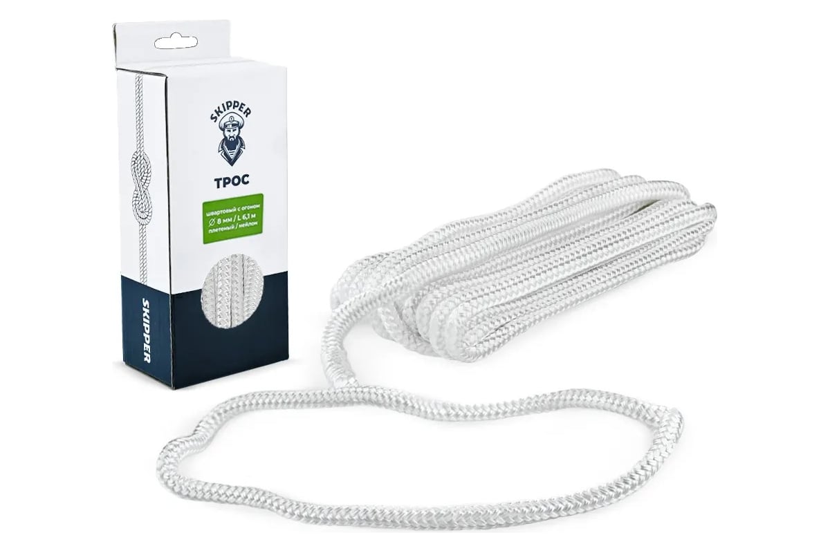 Плетеный швартовый трос Skipper с огоном, 12 мм х 10.67 м, нейлон SK-TDNBR121067W предназначен для швартовки маломерных судов.