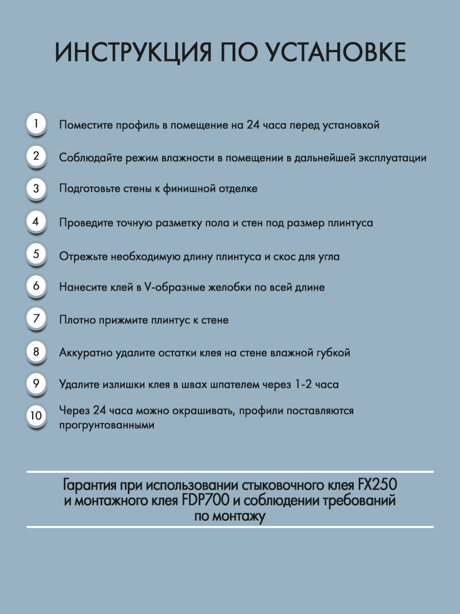 Этот водостойкий и легко окрашиваемый перекрывающий плинтус идеально подходит для ремонта. Устанавливается поверх существующего плинтуса, максимальный размер которого 1,4 на 9,9 см. Старые и поврежденные плинтусы, которые трудно удалить, больше не будут помехой. Примечания: Используйте усиленный монтажный клей DecoFix Power FDP700.