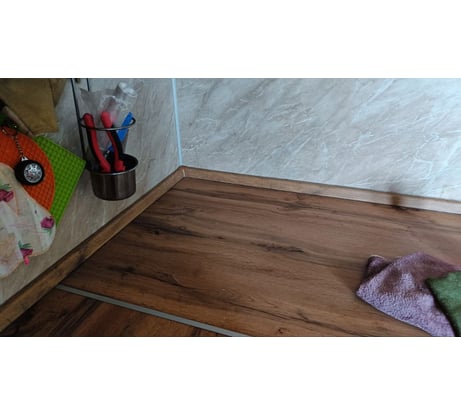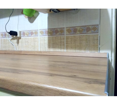 Плинтус к столешнице в цвете дуб вотан подошел отлично. Простой монтаж.