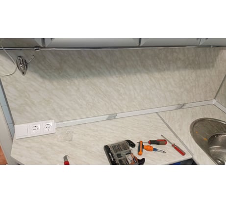 Отличный плинтус. Крепится саморезами легко. По цвету отлично подошел к столешнице "Столешница Кедр 727 1 Гранит белый"