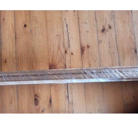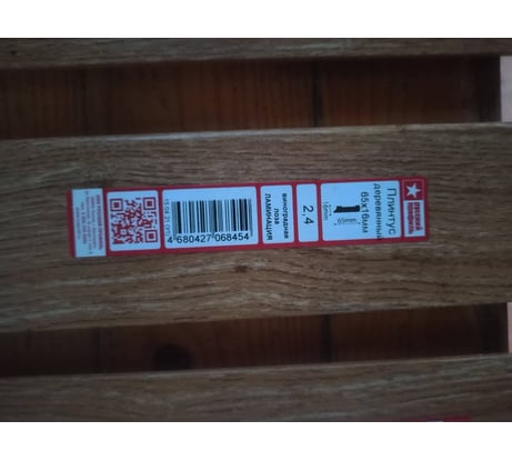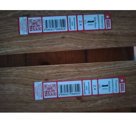 Основной материал - склеенное дерево и, по всей видимости, неправильно просушенное (серые прожилины). Это не критично, необходимо прокрасить пропиткой обратную сторону плинтуса дополнительно. Цена кусается.