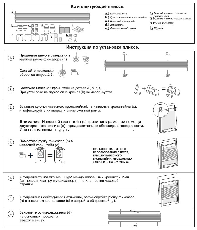 Классные жалюзи плиссе. Могут регулироваться снизу и сверху. В сторону окна штора покрыта светоотражающим материалом, что уменьшает нагревание от солнечных лучей. Не пропускают свет, за исключением отверстий для натяжителей (не критично). В комплекте есть всё для установки. Подробная инструкция прилагается. Советую.