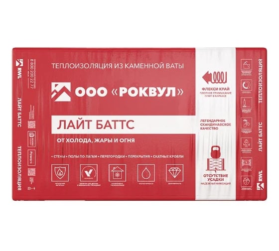 У утеплителя РОКВУЛ Лайт Баттс 1000 х 600 х 50 следующие плюсы: