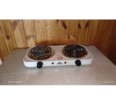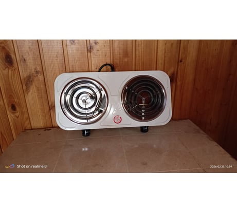 Электроплита двухконфорочная со спиральными ТЭНами , первый ТЭН мощностью 1 кВт , второй 1.5 кВт .
