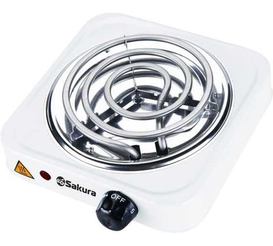 Плитка электро SAKURA ПЭ-02 1000Вт 135мм 1конфорка/спираль, белый 00000028938